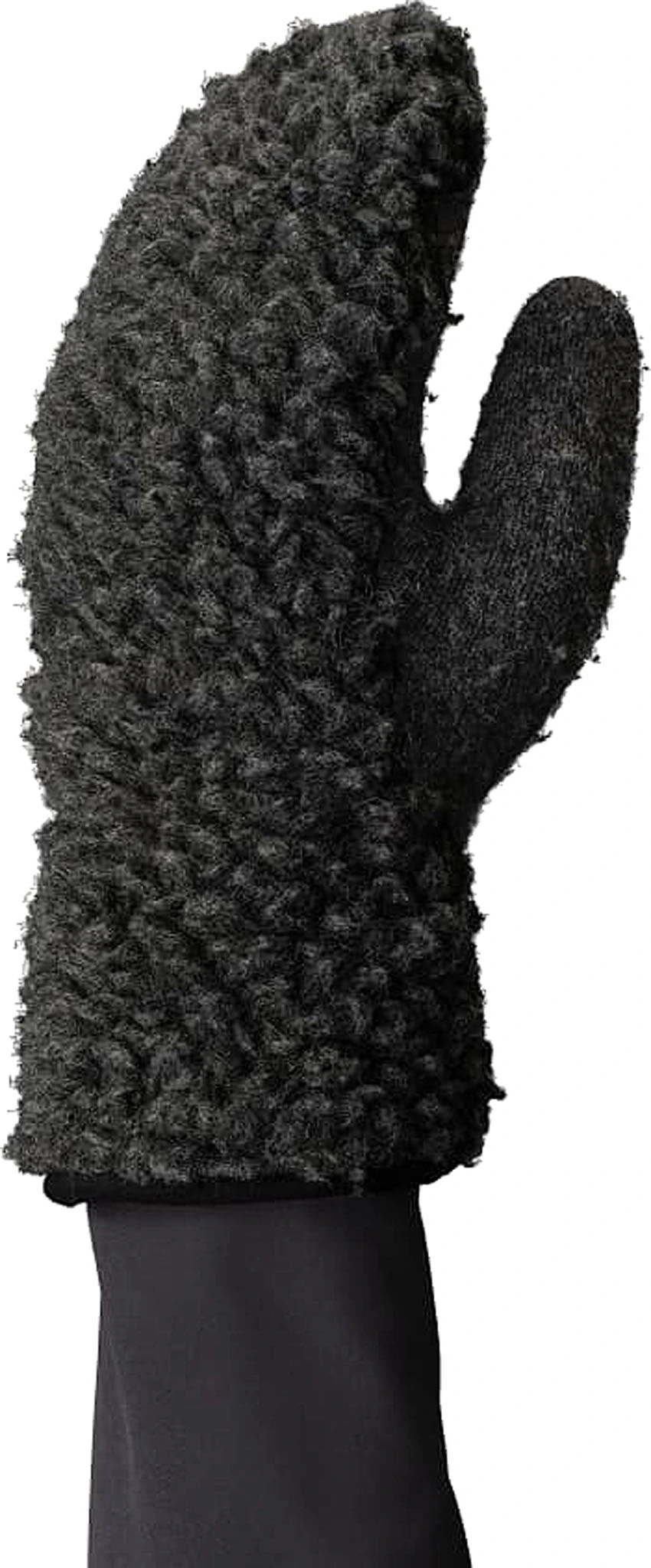 The wool pile fabric these mittens are made of is a combination of 67% Polyester and 33% Wool. We use this blended wool pile fabric 350 g/m2 because the Polyester is durable and quick drying, while the wool provides warmth that is incredibly soft and comfortable on the skin. These mittens have double and single layer construction as a part of the design for warmth and optimized grip.
