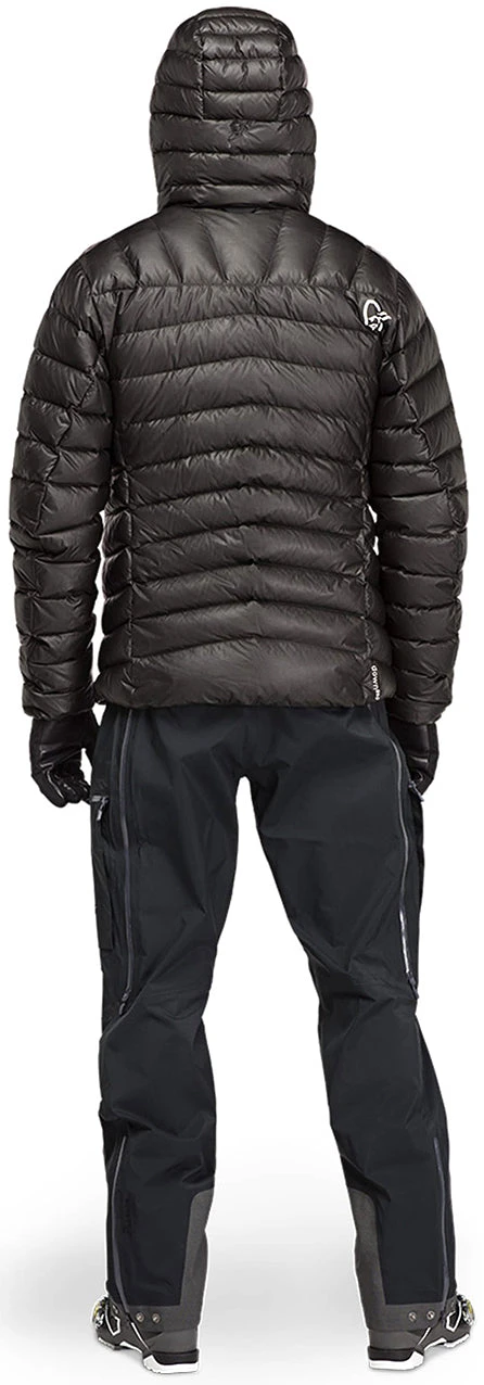 The men’s LYNGEN GORE-TEX INFINIUM DOWN850 hooded jacket combines a weather-resistant face fabric with an excellent down insulator. This alpine-focused jacket is padded with Norrona’s RDS Certified down850 fill insulation, which features 93 to 96% down clusters. The padding is certified to European Standards, and its fill power delivers the ultimate warmth and breathability. A newly developed GORE-TEX SHAKEDRY technology eliminates a traditional face fabric while providing a windproof, water-repellent surface that dries in a few shakes. A fitted storm hood fitted is compatible with climbing and ski touring helmets and is one-hand adjustable. Concealed 4mm zippers at the front opening, chest, and hand pockets prevent cold spots. Powerstretch sleeve cuffs and the adjustable lower hem help seal out brisk winter weather.
